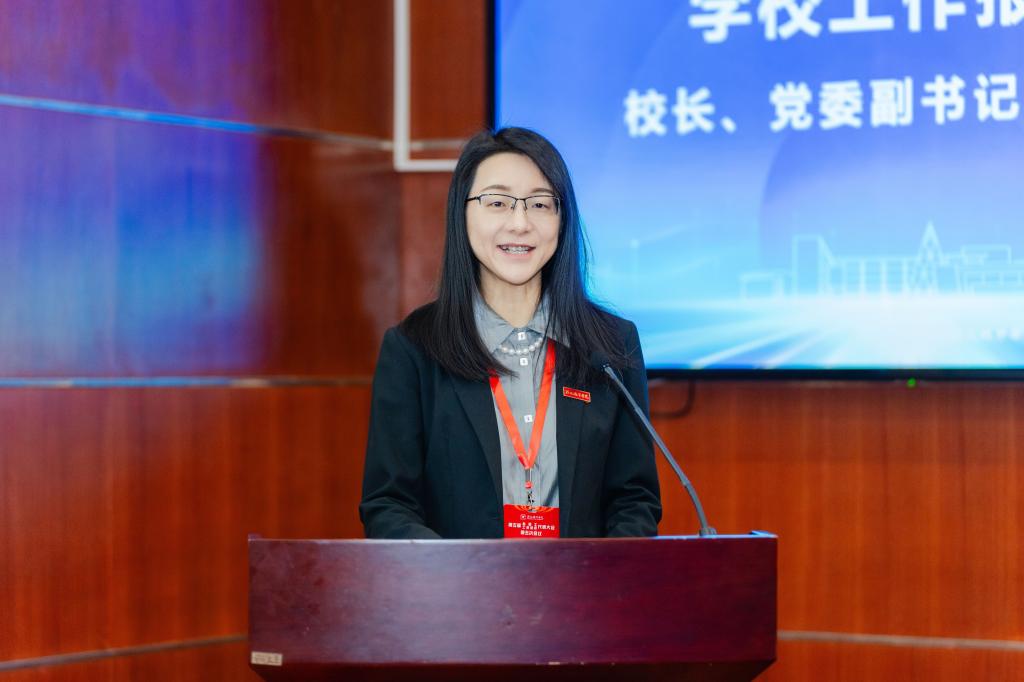 她在报告中分析研判了学校目前存在的短板不足,并从教育强国、教育强省战略规划高位推进,人工智能对教育教学的影响和新发展阶段的方位坐标三个方面,对新形势下学校面临的机遇与挑战做了深入剖析。并结合学校2025年度工作要点,以“六个聚焦”和“六个全力打造”对年度重点工作进行部署,号召全体教职员工主动挺膺担当,全面深化改革,聚力创新发展,为加快建设高水平一流应用型大学而接续奋斗。