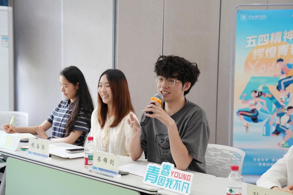 董悦认真听取了大家的发言并一一作出回应和交流,他为大家在学术科研、创新创业、学生工作、党建服务等方面的成长与收获点赞。他勉励全校青年学子传承和弘扬“五四精神”,为推进中国式现代化贡献青春力量,并提出了六点期望: