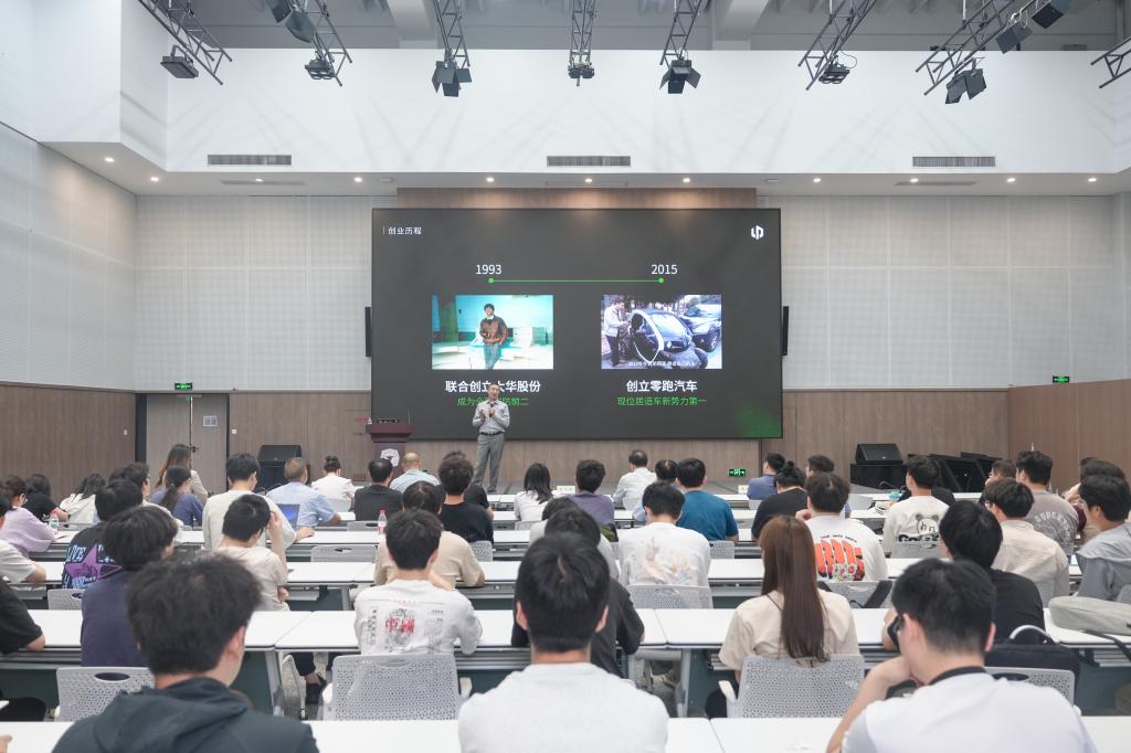 5月15日下午,零跑汽车创始人、董事长兼CEO朱江明做客城院大讲堂,他以“践行‘求是’精神,做高品质、高配置智能电动汽车普惠者”为主题,用硬核技术数据与鲜活创业故事,勾勒出零跑汽车以“求是”为锚,在全球汽车产业掀起普惠革命的壮阔蓝图。校党委书记董悦为朱江明颁发纪念牌,副校长斯荣喜出席。