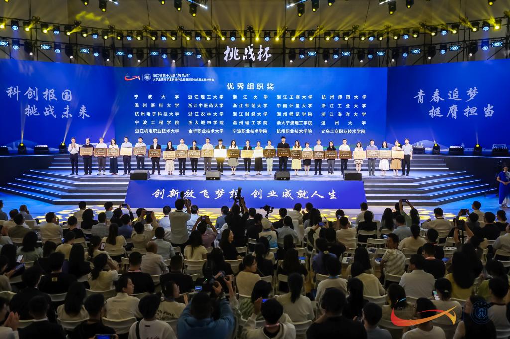 5月18日浙江省第十九届“挑战杯”大学生课外学术科技作品竞赛闭幕。我校斩获2金9银10铜荣获“优秀组织奖”比赛成绩再创新高。
